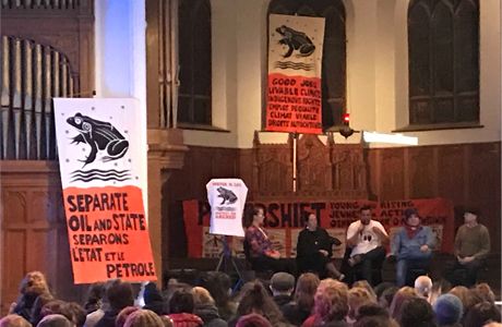 Mike Palacek of the Canadian Union of Postal Workers talked about the fact that their last round of negotiations put climate change on the bargaining table through the introduction of public postal banking to finance green projects and transitioning Canada’s largest truck fleet to electric - which would involve retrofitting plants like GM in Oshawa instead of closing them. But he also talked about how they used this beyond the bargaining table, as a tool to reach out to the community in a campaign called “Delivering Community Power” that involved going door to door with a pamphlet on how we could become carbon-neutral.