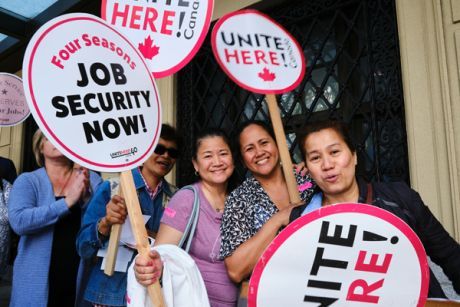 Members of UNITE HERE 40 from Rosewood, Four Seasons, Hyatt, Westin Bayshore and Pinnacle Habourfront in Vancouver are in contract negotiations, calling for an end to the rampant cuts to workers’ hours, and a commitment to “address specific concerns about discrimination and harassment in an effort to improve the working environment.”