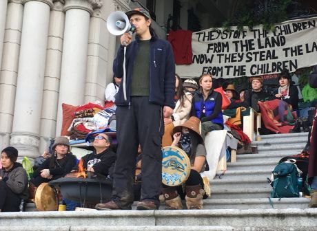 Indigenous youth have been blocking the doors to the legislature since right after the RCMP invaded the unceded land of Wet’suwet’en nation. They spent nights on the stone steps, as more and more joined them. They called for support to shut down the legislature on the day of the throne speech and hundreds answered the call.
