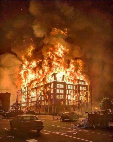 For three nights in a row, Minneapolis has been ablaze. Crowds of thousands have gathered, setting buildings on fire, destroying police cars and getting into skirmishes with the cops. On the night of Thursday, the 28th, a police station near where George Floyd was murdered was overwhelmed by protesters and set on fire. An image of Marx’s words, spray-painted on the outside of a store, went viral, reading, “When our turn comes, we shall not make excuses for the terror.”