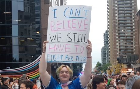 In 2023 when the Million March for Children happened across the country, there was a dangerous temporary merging of an evolved-Convoy white nationalists with conservative racialized communities – early fascist underpinnings attempted to capitalize on the fears and misunderstandings about 2SLGBTQIA+ folk. When Israeli attacks increased in onslaught post-October 7, we showed up to fight occupation and genocide with our Palestinian siblings and comrades, some of whom had helped organize the school board rally a month earlier. We are vocal against attempts at Israeli pinkwashing and reject attempts to pit oppressions against one another.