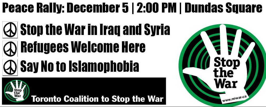 Since the horrific attacks in Paris, many are calling on the Trudeau government to renege on its commitment to bring Canada’s bombers home from Iraq and Syria and to cancel plans to bring 25,000 refugees into Canada. We cannot let the attacks create more war and racism.
