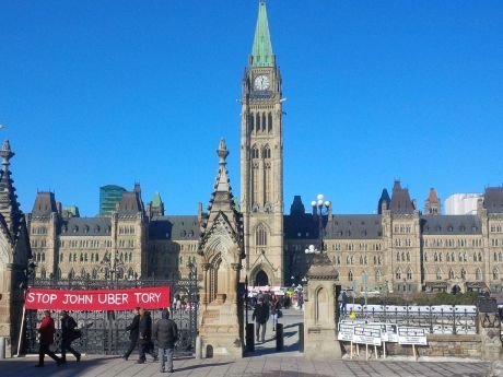 Toronto drivers brought a banner calling on Toronto Mayor John Tory to take action against Uber, while Unifor Canada president Jerry Dias told the rally he has given up hope that the City of Ottawa will fight Uber and others like it. The protest took place a week after Edmonton city councillors voted to legalize Uber in Edmonton, the first Canadian municipality to do so.