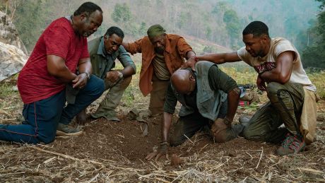 There are various references to the current political situation. Paul wears a MAGA hat and admits he voted for Trump. He says he was tired of being shit on and wanted to get his own; it’s clear his life since Vietnam has been marked by the ongoing racism and class inequalities in America. His anger has been turned against some of the very same people who suffer at the hands of politicians like Trump, variously referred to in the movie as President Bone Spurs and the Klansman in the Oval Office.