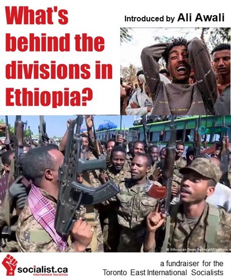 Join the Toronto East branch of the International Socialists featuring Ali Awali who is an IS member in the Toronto East branch and long-time revolutionary who was involved in Ethiopian student politics in the late 1960s. He will speak about the roots of the current conflict and the way forward for ordinary Ethiopians, followed by a period of discussion.